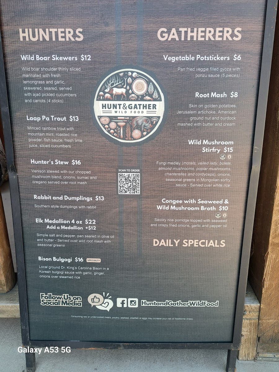 Tucked along 159 Bridge St in the quiet, mountain-wrapped town of Hot Springs, the Hunt And Gather Wild Food Menu feels like stumbling onto a place that knows exactly how to surprise you. As you flip through the offerings, you can sense an earthy creativity behind each dish, the kind that brings local ingredients forward without making a big fuss about it. And while everything leans rustic, nothing feels heavy; instead, there’s an easy balance that keeps you curious about what’s coming next.